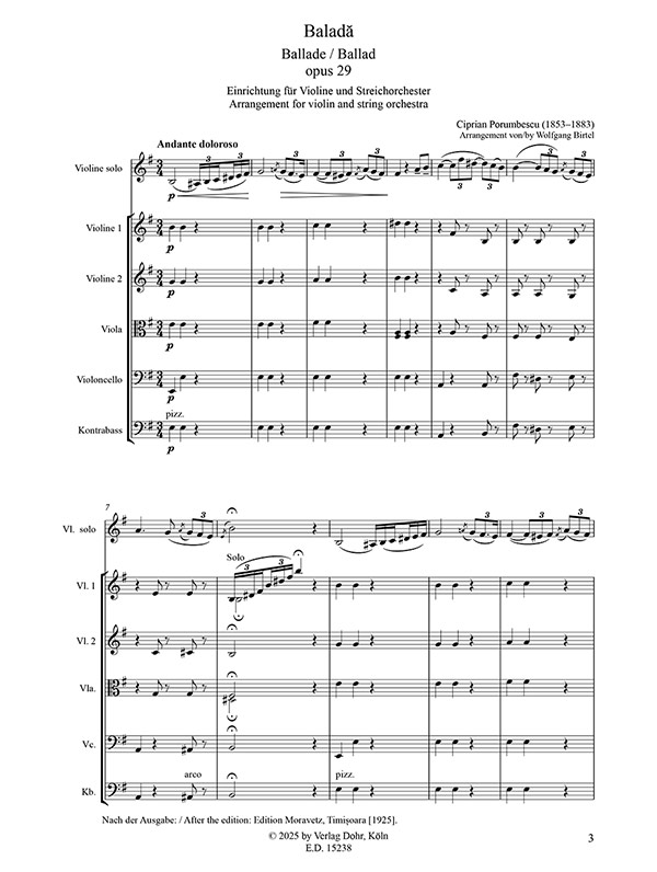 Ballade op. 29 für Violine und Streichorchester eingerichtet von Wolfgang Birtel Partitur Streicher-Stimmenset (5/4/3/2/1) Klavierfassung (zgl. Klavierauszug) mit Solostimme |