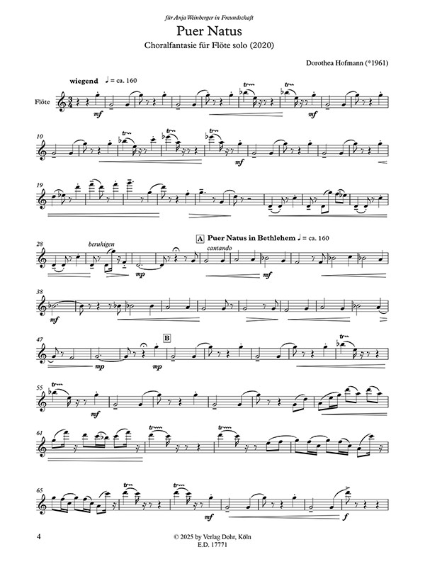Puer Natus (2020) Choralfantasie für Flöte solo M-2020-3771-3 |