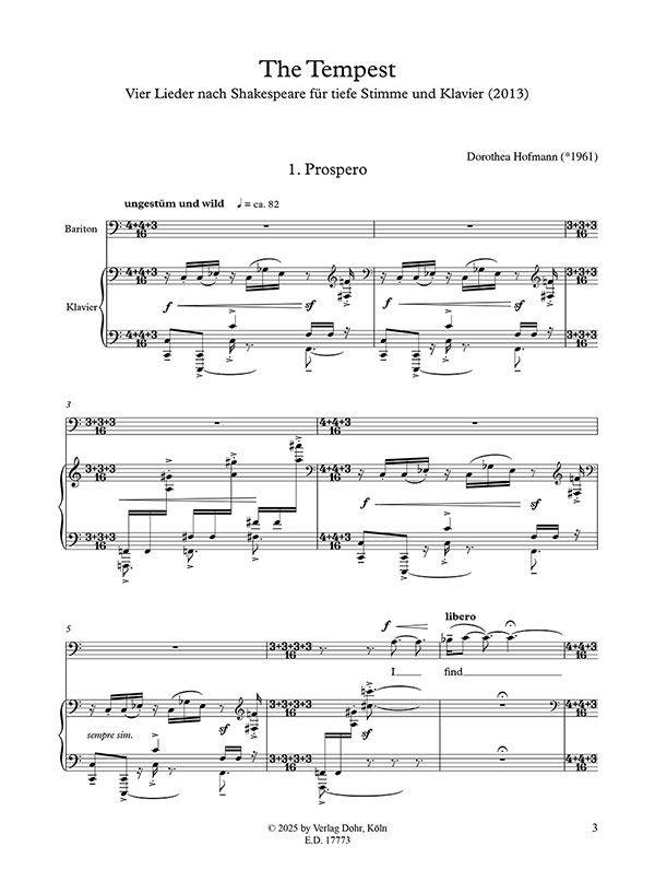 The Tempest (2013) Vier Lieder nach Shakespeare für tiefe Stimme und Klavier Spielpartitur M-2020-3773-7 |