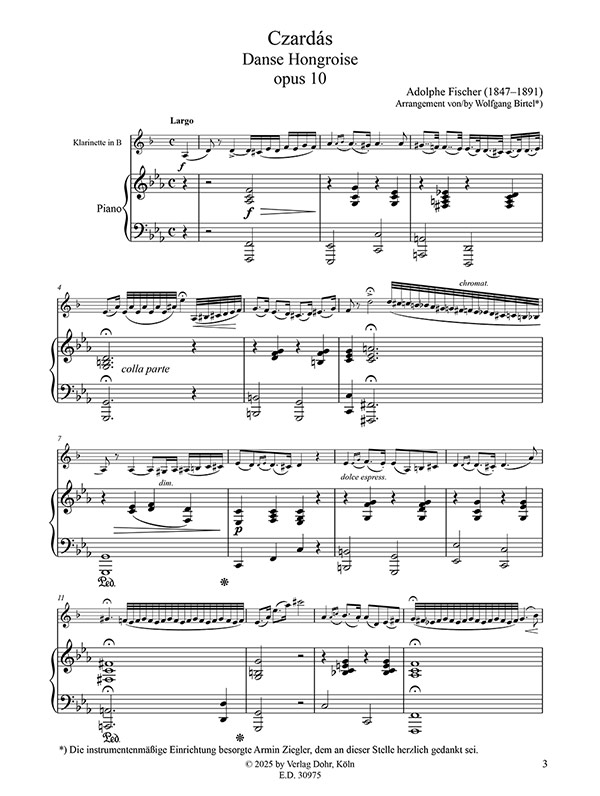 Czardás op. 10 für Klarinette (B) und Klavier eingerichtet von Wolfgang Birtel Partitur und Stimme M-2020-4975-4 |