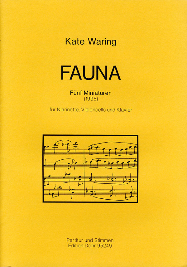 Zum WerkKate Waring über ihr Werk FAUNA, nach einem fermate-Interview mit Robert Fontani im Mai 1995: Das Kammerstück trägt den Titel "FAUNA" und ist eine "Antiphon" zu den fünf Miniaturen "FLORA", die 1987 für Flöte und Harfe entstanden und am 17. Februar 1987 im Bonner Wohnstift Augustinum von den Düsseldorfer Musikerinnen Martina Wahn und Fabiana Trani uraufgeführt worden waren. "FLORA" steht für die Initialen der fünf Sätze: