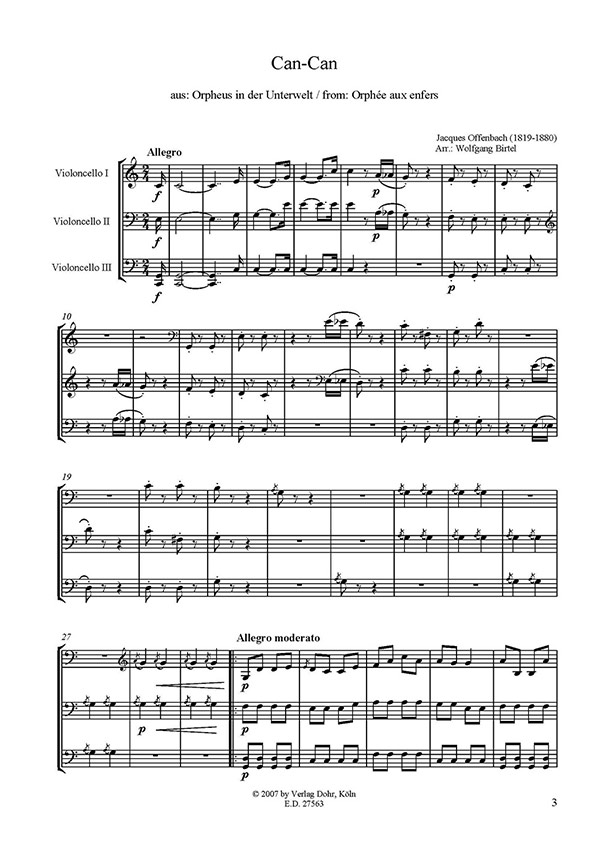 Can-Can aus "Orpheus in der Unterwelt" für Violoncello-Trio eingerichtet von Wolfgang Birtel Partitur und Stimmen M-2020-1563-6 |