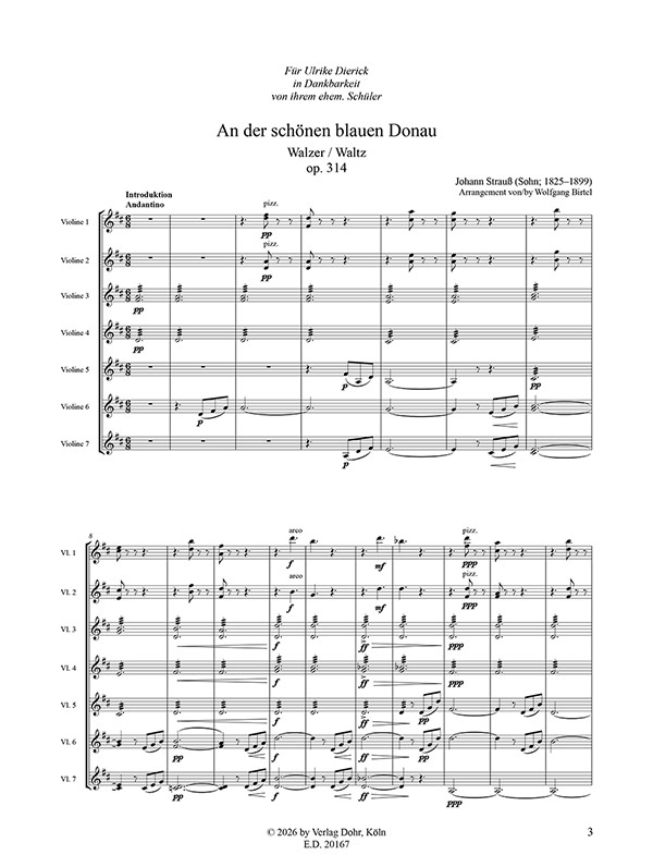 An der schönen blauen Donau op. 314 für sieben Violinen eingerichtet von Wolfgang Birtel Partitur und Stimmen M-2020-4167-3 |