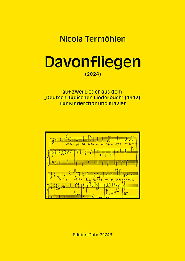 Zum Werk"Davonfliegen" basiert auf zwei Liedern des zweisprachigen "Deutsch-Jüdischen Liederbuch" von 1912, das von Abraham Zwi Idelsohn, einem bedeutenden Musikforscher und Komponisten, veröffentlicht und von James Simon, einem Berliner Unternehmer und Mäzen, finanziert wurde. Die Sammlung umfasst 45 deutsche und 100 hebräische Lieder und war als musikpädagogisches Werk für Schulen in Deutschland, Palästina und der Diaspora konzipiert. Es diente dazu, kulturelle Identität und Gemeinschaft durch Musik zu fördern und war innovativ, da es zweisprachig in Deutsch und Hebräisch gestaltet wurde. |