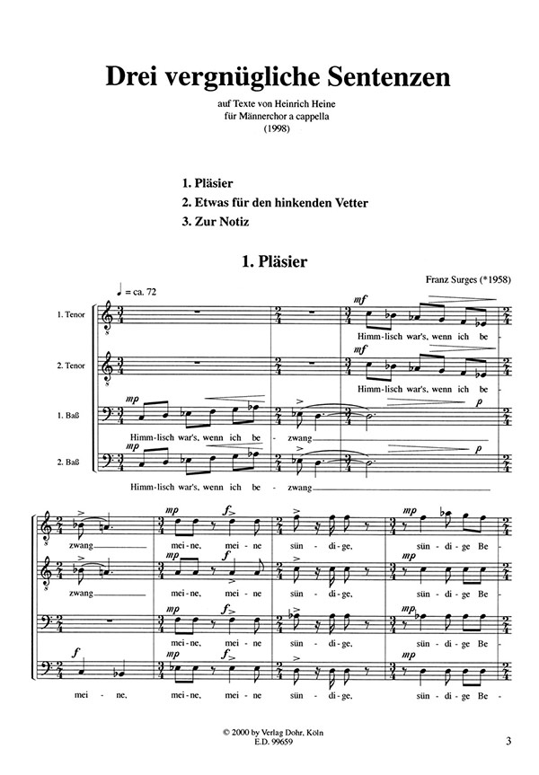 Drei vergnügliche Sentenzen (1998) Partitur, zgl. Chorpartitur M-2020-0659-7 |
