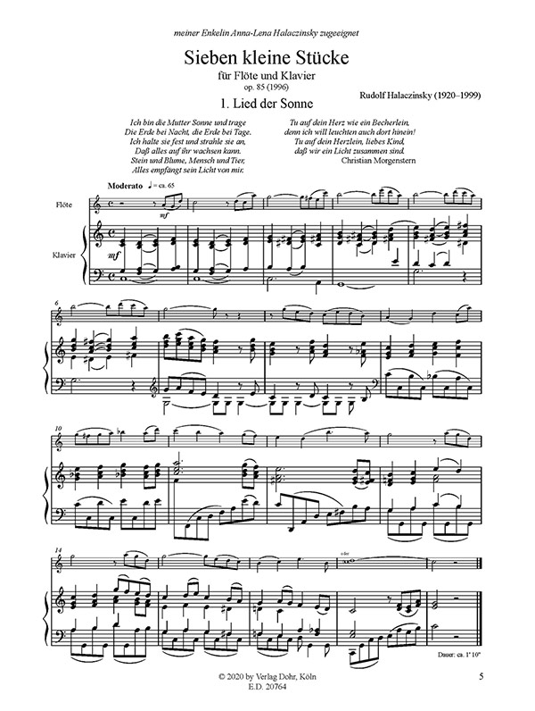 Sieben kleine Stücke op. 85 (1996) Fassung für Flöte und Klavier Partitur und Stimme M-2020-0764-8 |
