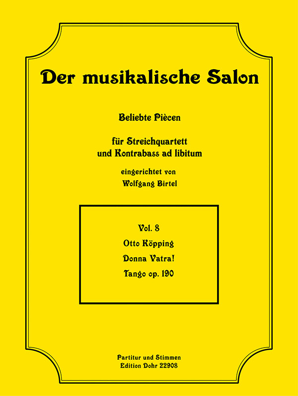 Donna Vatra! Tango op. 190 für Streichquartett (mit Kontrabass ad lib.) eingerichtet von Wolfgang Birtel Partitur und 5 Stimmen M-2020-0908-6 |
