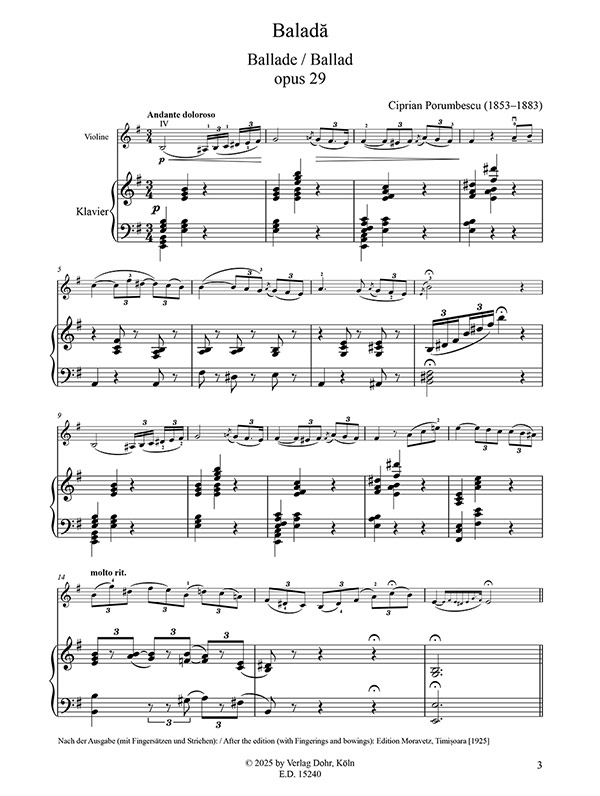 Zu dieser AusgabeDie vorliegende Ausgabe folgt Edition Moravetz (1925) und übernimmt die Fingersätze und Striche. Das Werk liegt in einem Arrangement für Violine und Streichorchester von Wolfgang Birtel vor (E.D. 15238). Die vorliegende Ausgabe der Originalfassung dient dieser zugleich als Klavierauszug. |