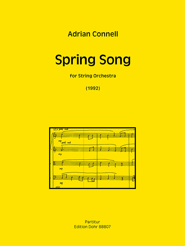 On the workSpring Song is a celebration of the arrival of spring, a renewal of life from the death of the old year. The basic structure of this piece is classical Sonata form. The opening represents winter and this section contains the motives that are the seeds for spring. The music does not really take flight until the development section where march-like textures punctuated by string fanfares propel the music forward. The recapitulation is transformed as the themes reappear in a different order and use the march-like elements from the development. The coda acts as a tranquil recall of the opening music as four solo strings take on the guise of birds singing in contentment in the summer sun. Duration: 10 minutes